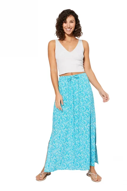 Jupe longue fendue Bleu cyan – JIPV0004A