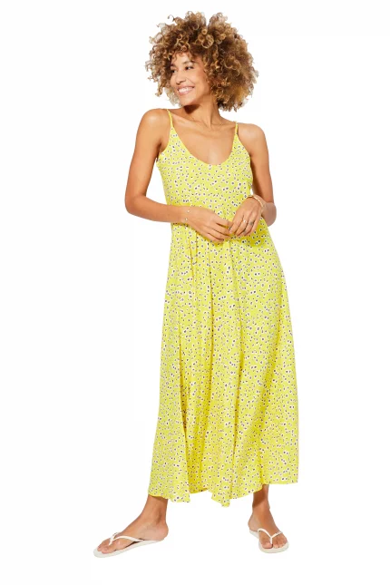 Robe longue ample Jaune à fleurs blanches – MAXIPAV0010A
