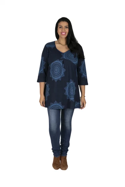 Tunique Bleu marine à motifs ethniques à manches 3/4 – TUP6040I