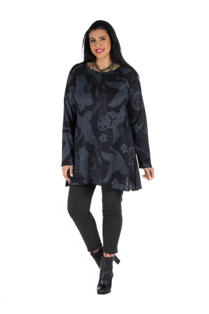 Tunique évasée Noire à motifs ethniques gris – TUP6011A