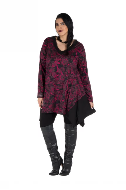 Tunique asymétrique Noire à motifs fuchsia – TUP6012A