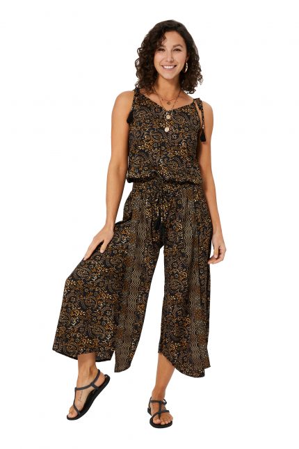 Combinaison à bretelles à nouer Noire à motifs dorés – MCCO2000E