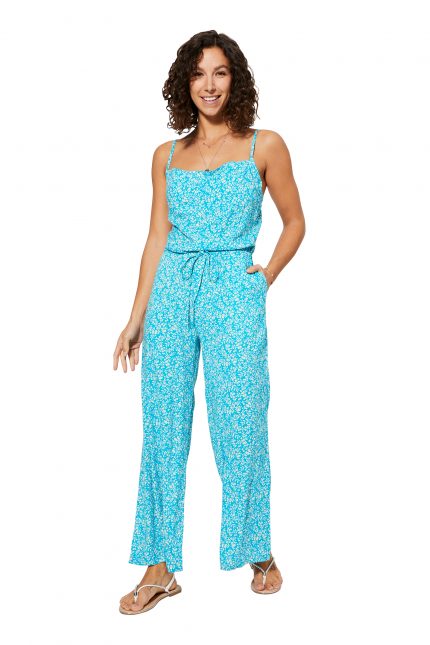 Connectez-vous pour voir les prixLaissez-vous séduire par cette magnifique combinaison évasée bleue ornée de fleurs colorées. Sa taille est ajustable grâce à sa ceinture et ses bretelles, et ses poches viendront compléter votre look.