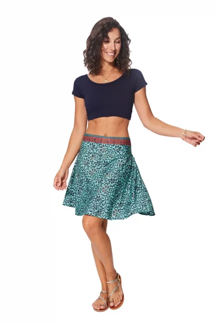 Jupe courte Bleue motifs arabasques – JIP2000H