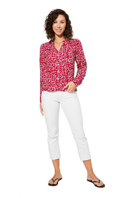 Chemisier col en v rouge à fleurs – TIPV0002B
