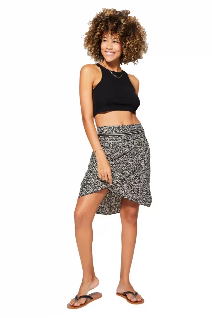 Jupe asymétrique effet portefeuille, noire & beige – JIP0043B