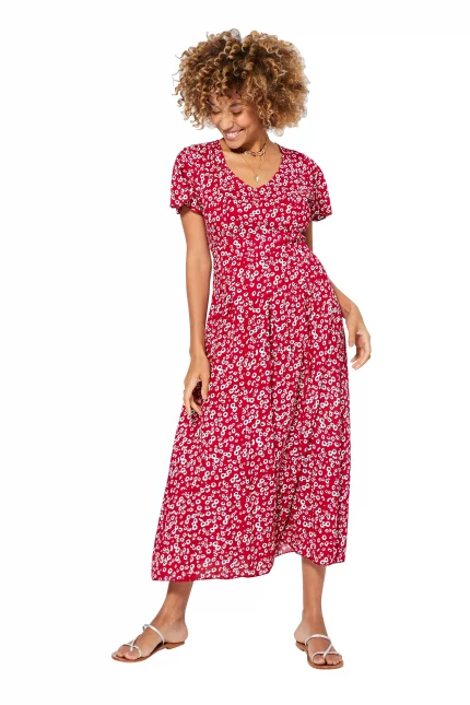 Robe longue à manches courtes Rouge à fleurs – MAXIPAV0016B