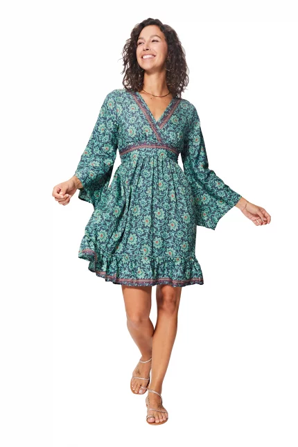 Robe courte bohème Bleue fleurie – RLIPV0021B