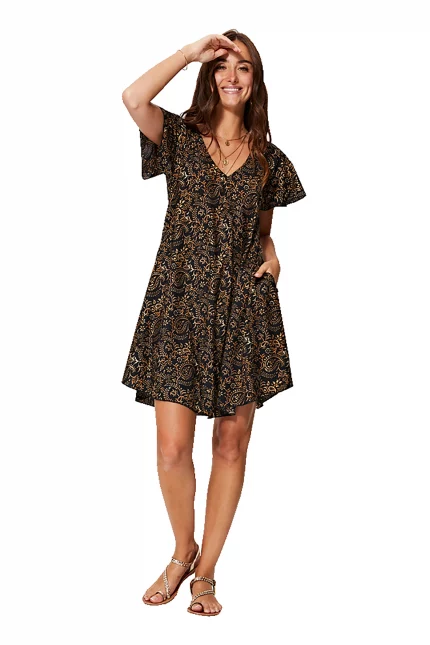 Petite Robe ample noire et or à manches courtes – RLIP2000E