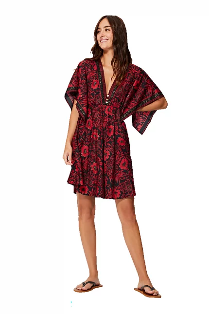 Robe bohème courte ample noire et rouge – RLIP2002D