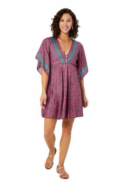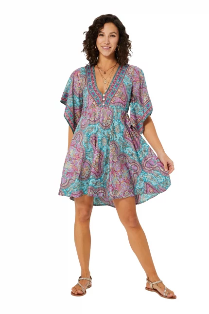 Robe bohème courte ample bleue et rose – RLIP2002A
