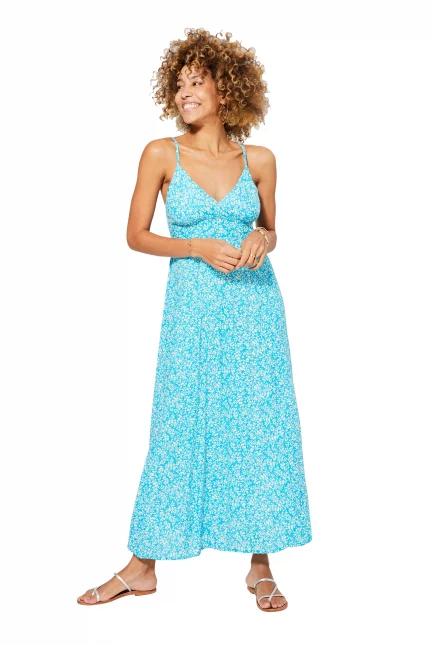 Robe longue dos nu Bleue à fleurs – MAXIPAV0007A