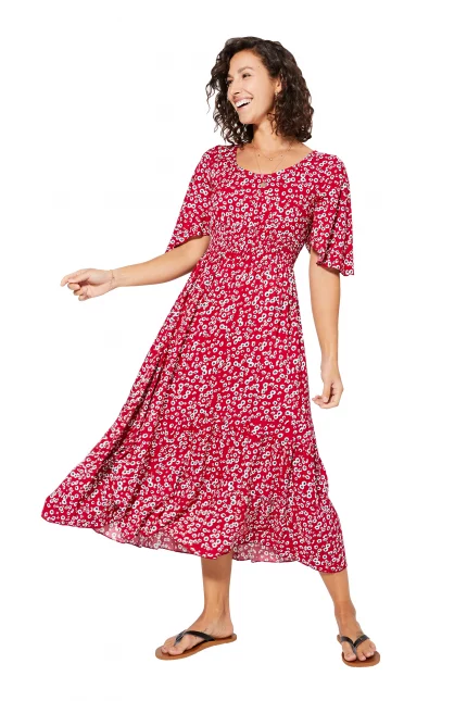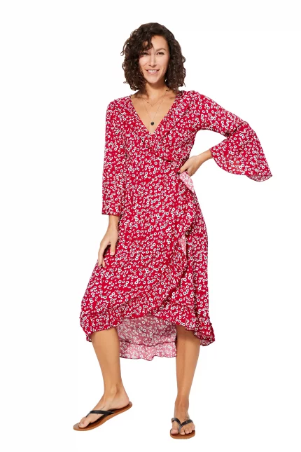 Robe mi-longue ample Rouge bohème – RLIP0272A