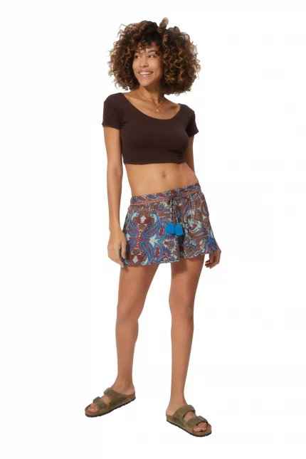 Short turquoise aux fleurs rose et orange – SIP0037D