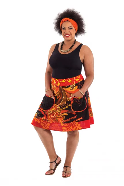 Jupe courte éclatante Rouge, jaune orange – JUP0016