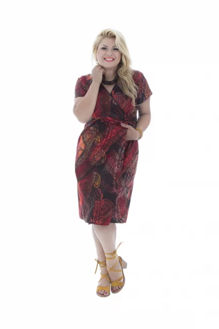 Robe en coton marron et rouge – ROP0144A
