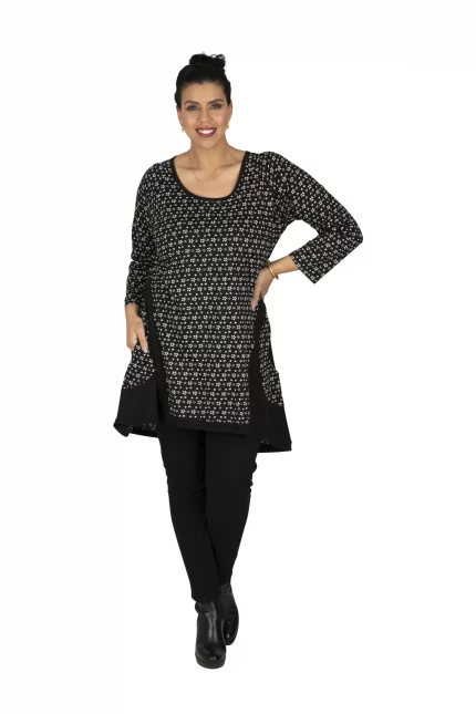 Tunique Noire à motifs ethniques fleuris – TUP6035K