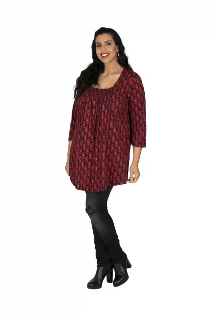 Tunique Noire à motifs rouges à manches 3/4 – TUP6038H