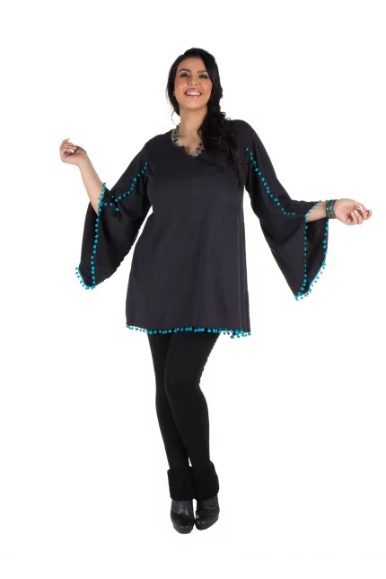 Tunique évasée Noire à motifs ethniques gris – TUP6011A
