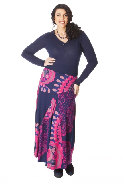 Jupe longue Bleu nuit à motifs fuchsia – JUP6000F