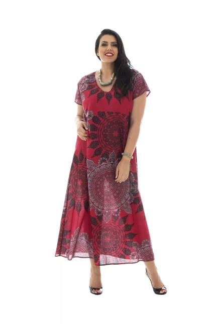 Cette robe mi-longue avec son motif multicolore est à la fois élégante et dynamique, illuminant votre look et vous permettant de vous démarquer.